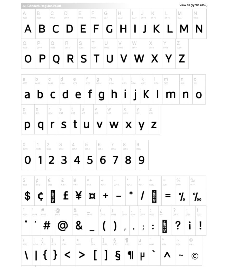 All Genders is a sans serif style font, it’s s family of three fonts Light, Medium and Bold. I chose the Bold as would be easily seen regardless of the size of the logo.
