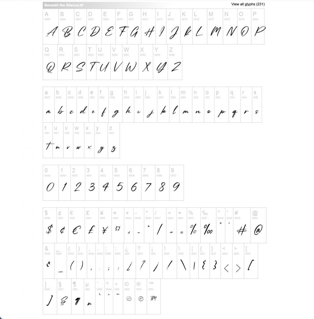 Beneath the Silence font is a script font. I’ve always liked using handwritten and script fonts, but wanted something different to use as part of the new stationery design.